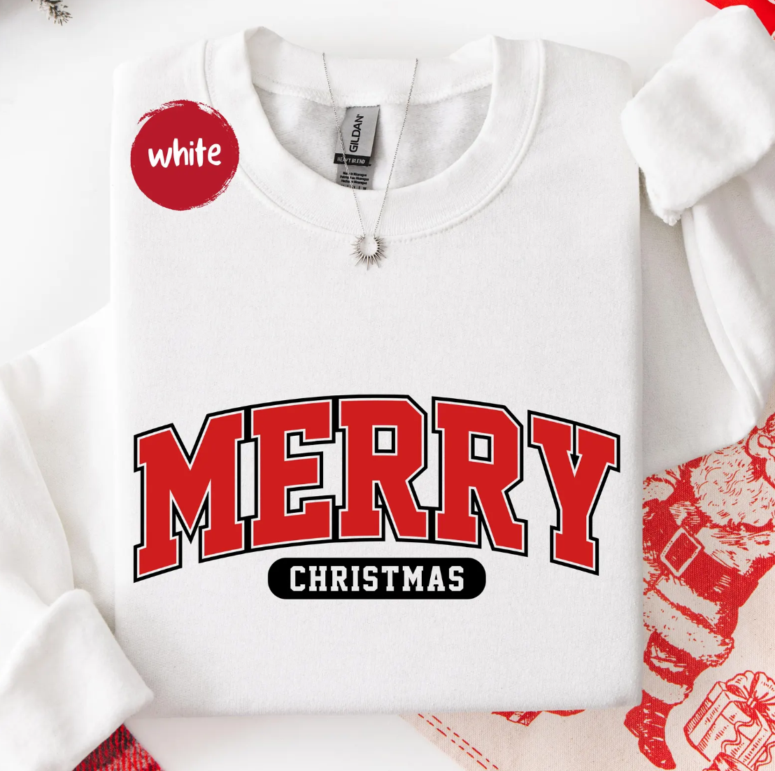 Stay cozy and festive with this bold retro “MERRY CHRISTMAS” design! Perfect for holiday gatherings, winter outfits, or gifting to someone who loves classic Christmas style.